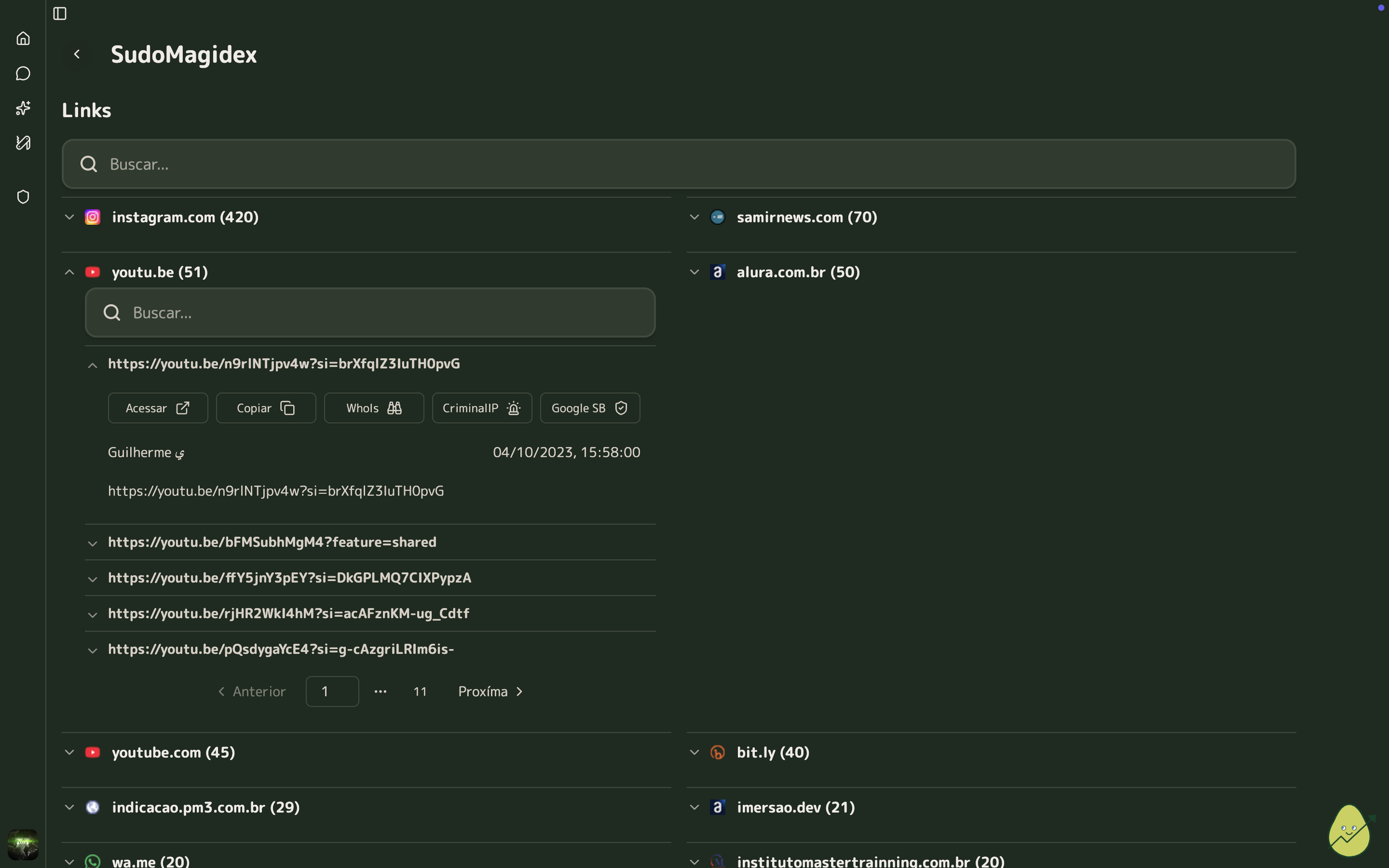 Extração automática de links